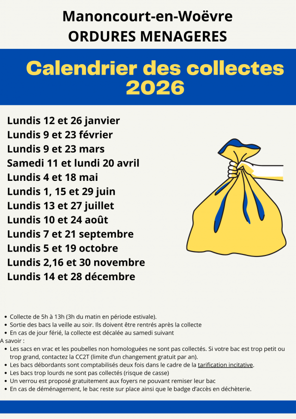 (En cas de jour férié, la collecte est reportée au samedi suivant)